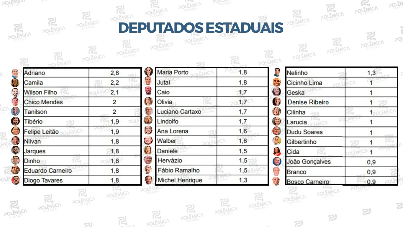 O nono levantamento do projeto realizado pelo Polêmica Paraíba em parceria com o Instituto de Pesquisa SETA, divulgado nesta terça-feira (31), traz um panorama atualizado da corrida por vagas na Assembleia Legislativa da Paraíba.